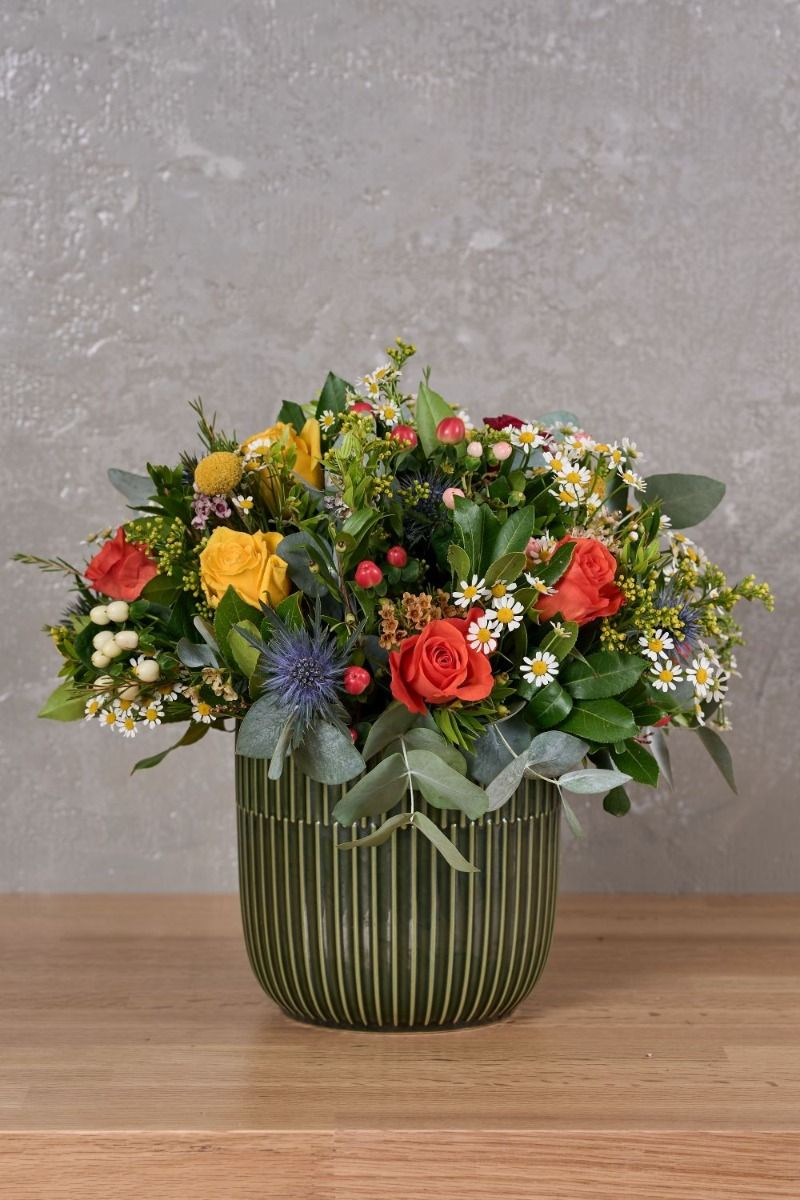Μία σύνθεση σε πράσινο κεραμικό κασπώ από πανδαισία χρωμάτων και αρωμάτων.