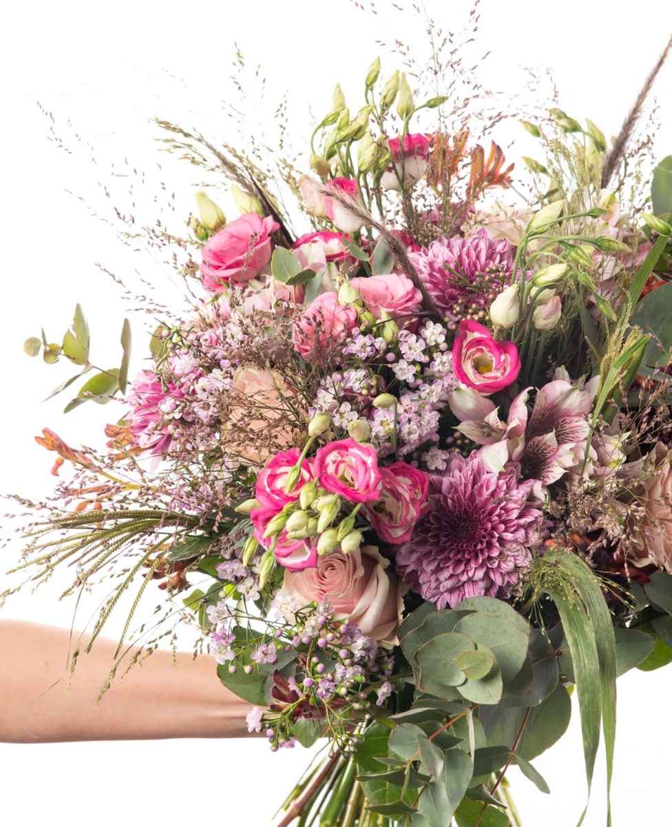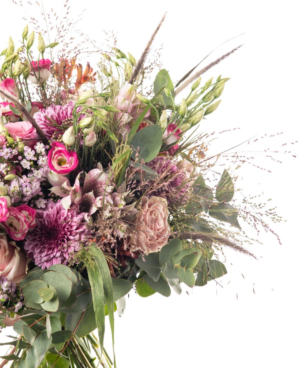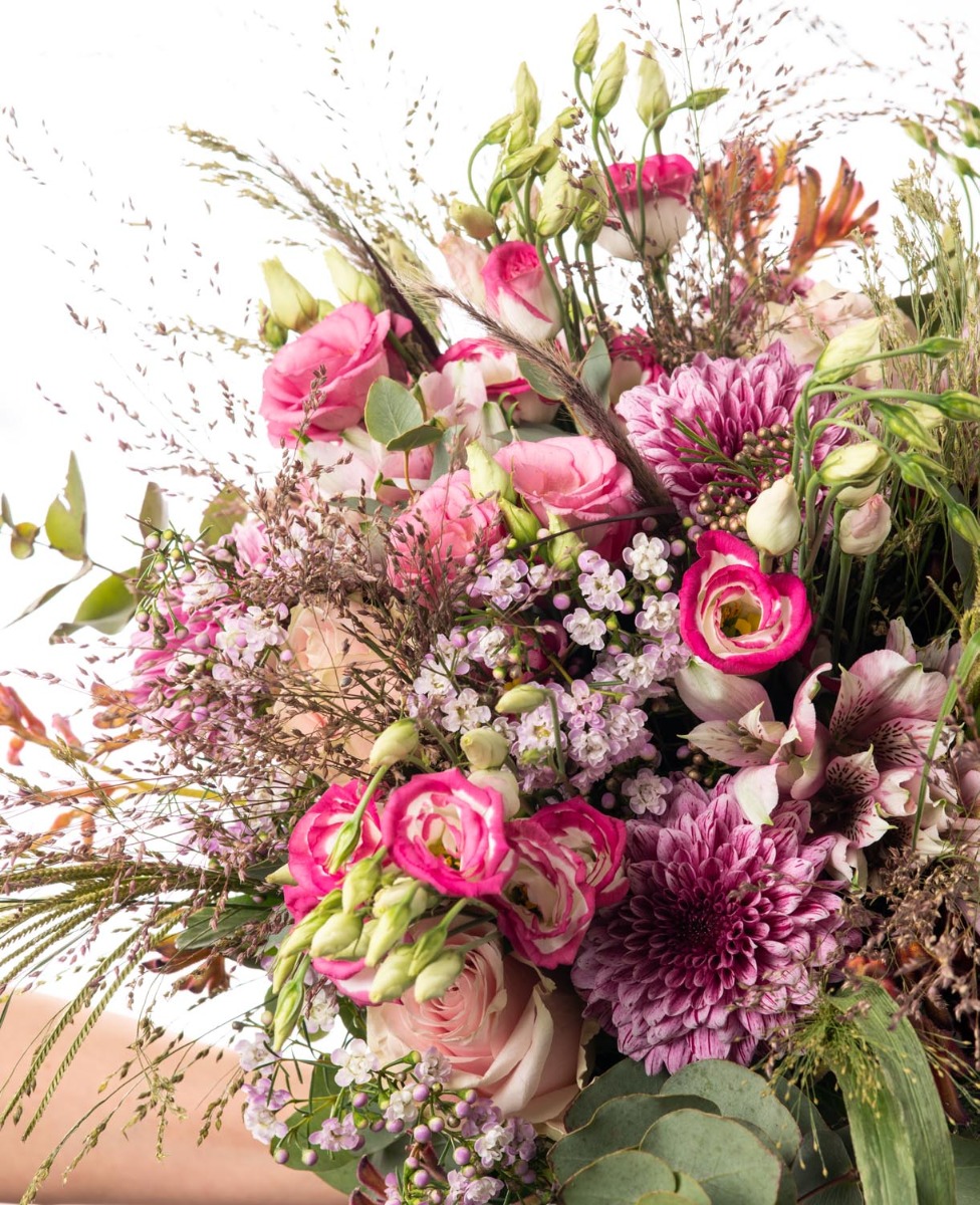 Ένα ονειρεμένο μπουκέτο σε ροζ αποχρώσεις, συνδυάζει λουλούδια του αγρού με τα αγαπημένα μας τριαντάφυλλα αποπνέοντας φρεσκάδα, ευαισθησία και ρομαντισμό.