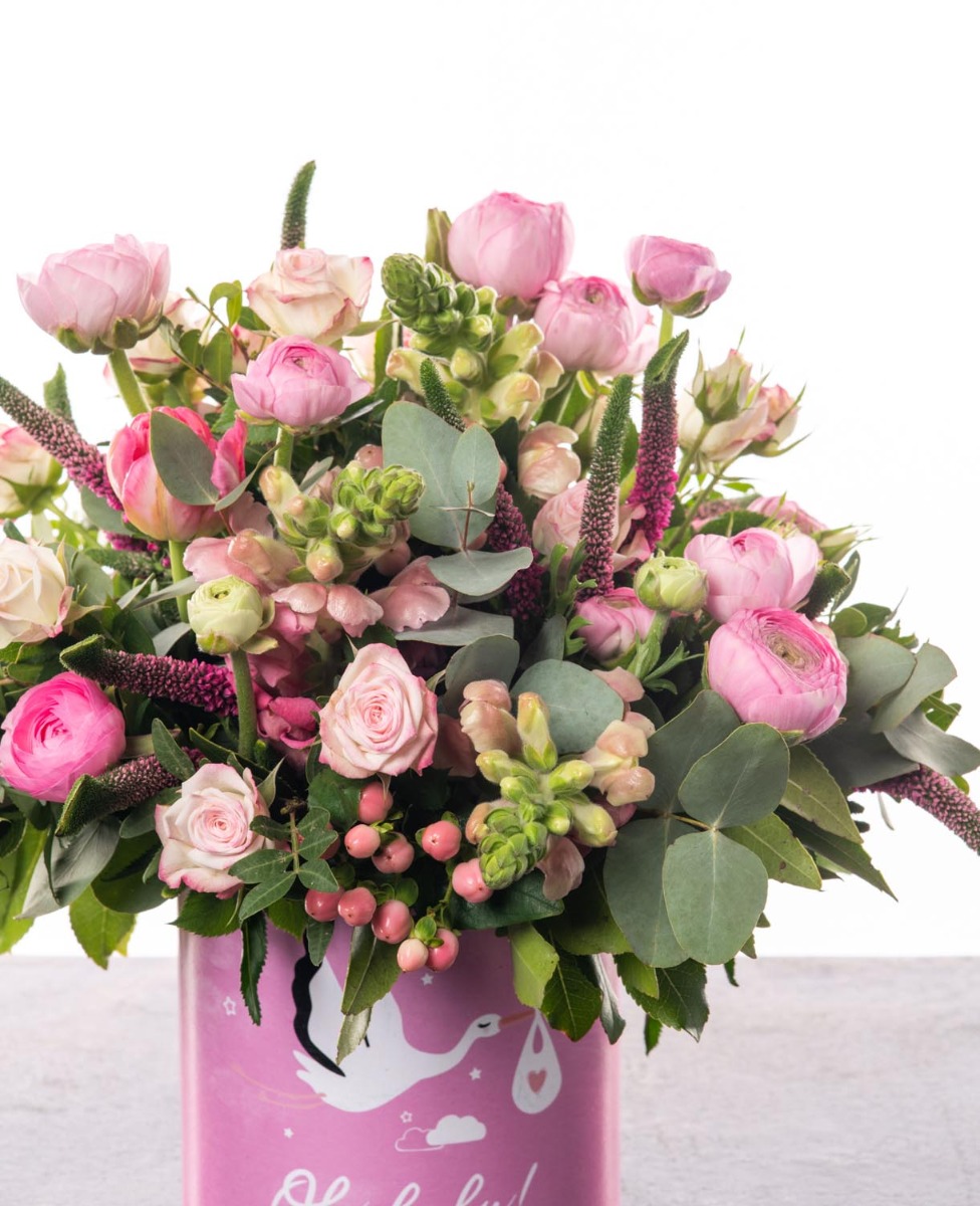 Μια υπέροχη σύνθεση με λουλούδια εποχής για νεογέννητο κοριτσάκι σε συνδυασμό με θεματικό κασπώ της Athir Desings δημιουργούν τον πιο όμορφο από το να υποδεχτείς τη νέα ζωή με χρώματα και αρώματα.