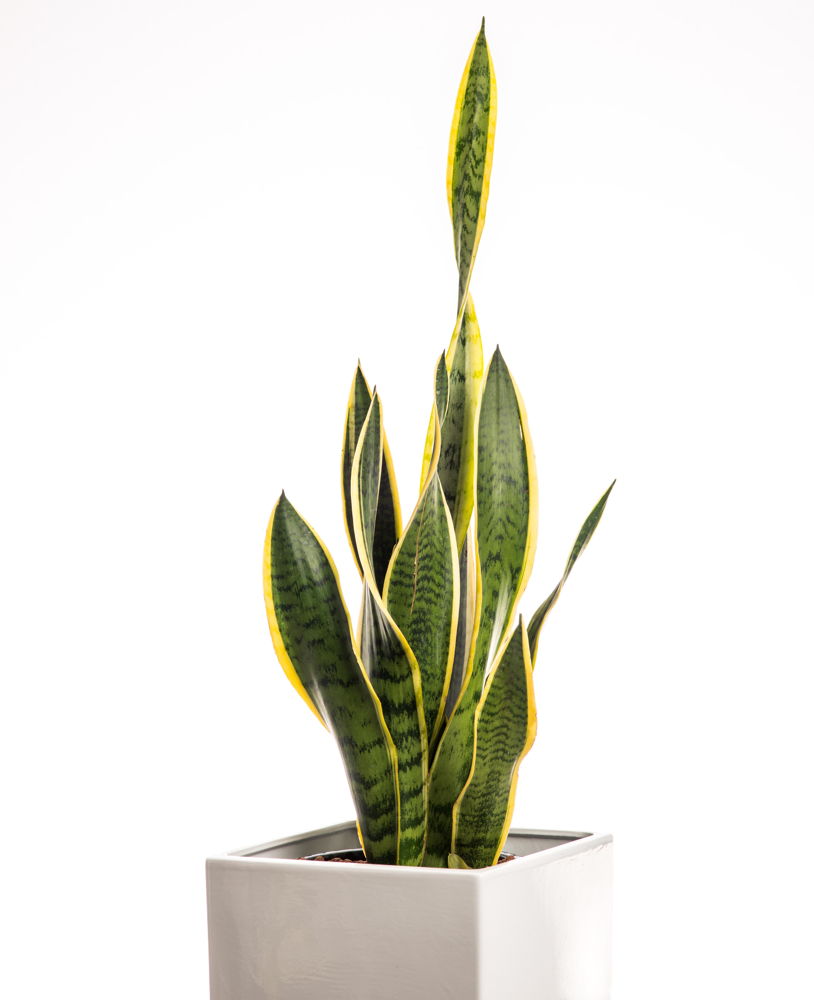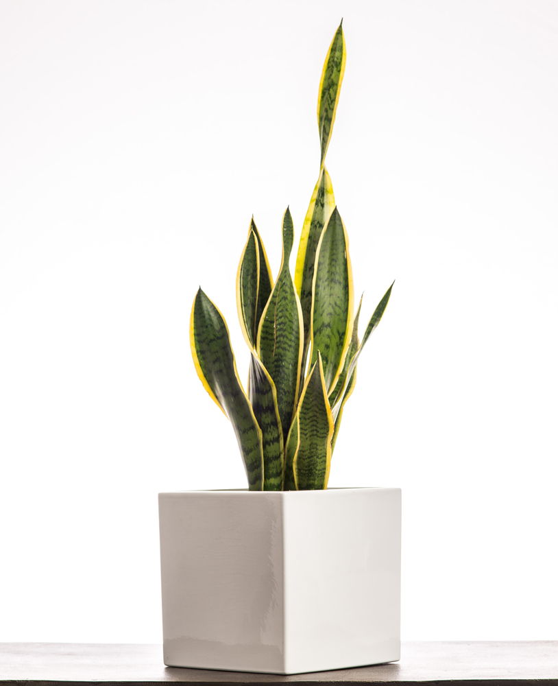 Ένας πανέμορφος συνδυασμός σανσιβέριας σε ένα λευκό κύβο. H σανσιβέρια είναι ένα φυτό εσωτερικού χώρου που φημίζεται για τις αντοχές της στον χαμηλό φωτισμό και την ξηρασία.