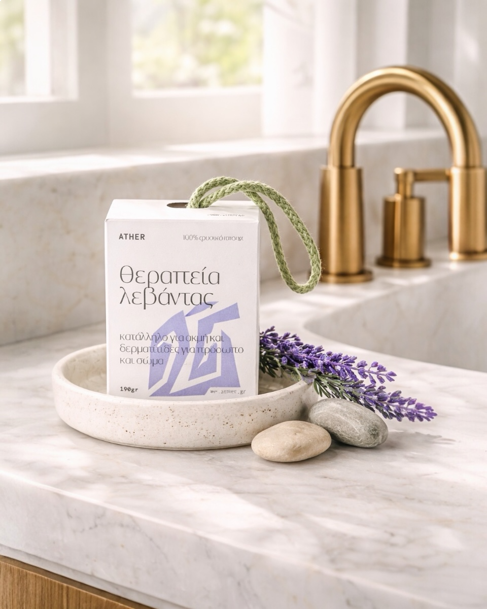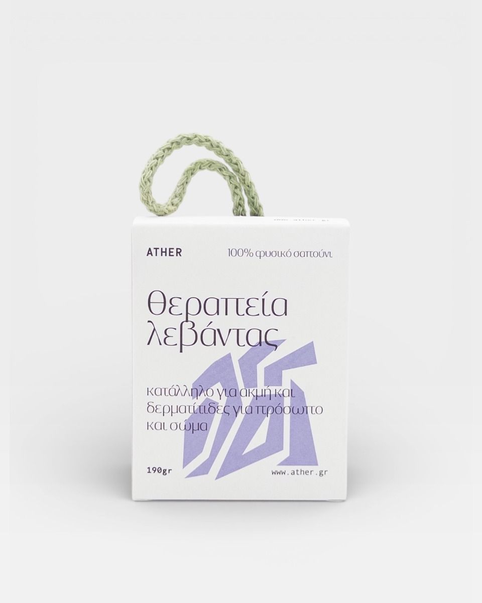 Χειροποίητο σαπούνι ”Θεραπεία Λεβάντας” με 100% φυσικά συστατικά και ένα μήνα ωρίμανσης κατάλληλο για ακμή και δερματίτιδες για πρόσωπο και σώμα. Βάρος ~190 gr .