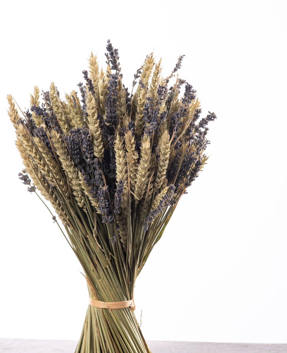 Ένα μπουκέτο από αποξηραμένο στάχυ και λεβάντα, έτοιμο να στολίσει το βάζο σας στο σπίτι ή το γραφείο. Κάθε μπουκέτο περιλαμβάνει περίπου 100 τεμάχια.