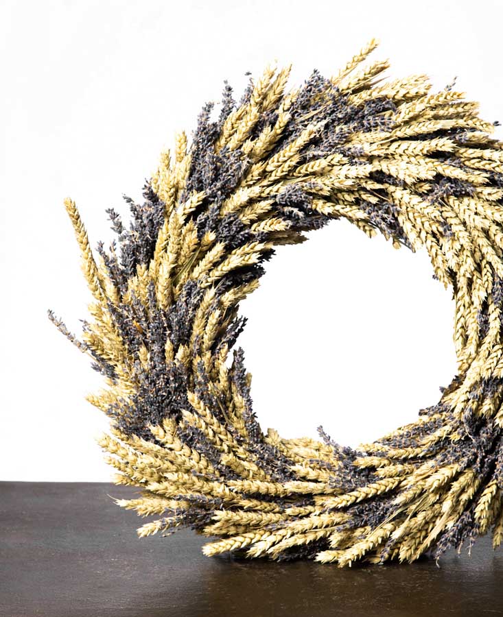Ένα χειροποίητο στεφάνι από αποξηραμένα στάχυα και μοσχομυρωδάτη λεβάντα. Πολύ εντυπωσιακό και μπορεί να διακοσμήσει την πόρτα στο σπίτι σας ή και οποιοδήποτε άλλο σημείο.