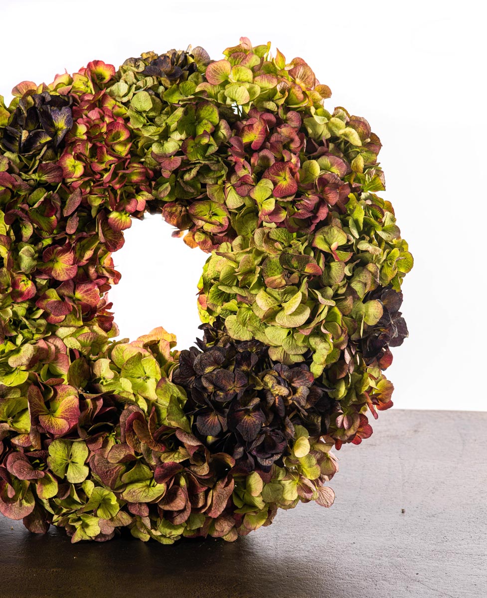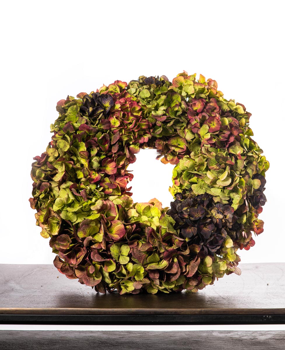 Στεφάνι από Ορτανσία σε χρώματα αντικέ που αποξηραίνεται και στολίζει όλο το χρόνο την πόρτα του σπιτιού σας. Διαστάσεις : 40 εκ.